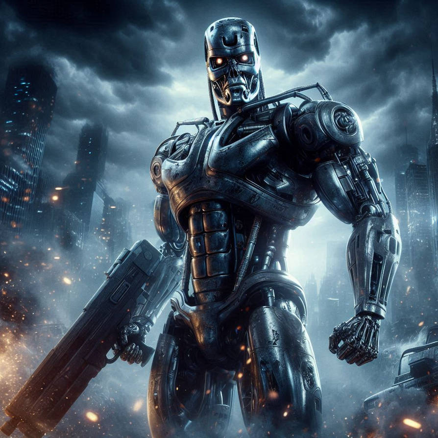 * Officially inspired T-800 Terminator design: Captures the cybernetic assassin’s metallic skull and glowing red eyes in photo-realistic detail.